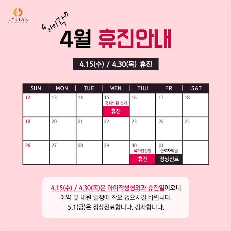 석가탄신일인 4월 30일 에는 휴진을 하고