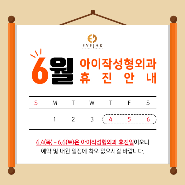 아이작성형외과 6월 휴진일 공지드립니다~