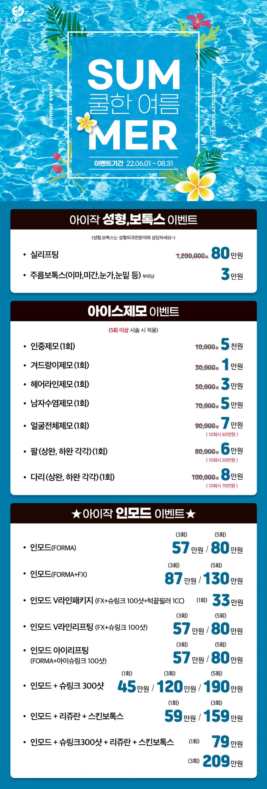 아이작성형외과 여름이벤트 입니다.
