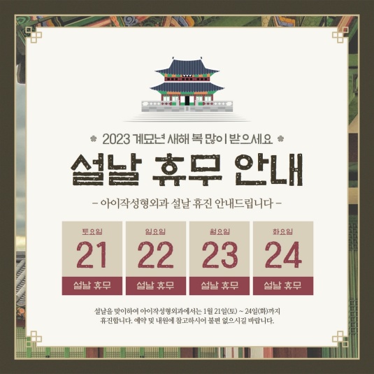 1월 21일부터 대체휴일인 1월 24일까지 휴진이며
